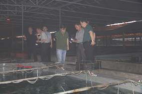 驗收專家組聽取了史寶副研究員代表課題組做的星康吉鰻工廠化循環水規模化養殖技術研究工作與技術匯報,在線觀看了循環水養殖系統的水下影像資料,查閱了養殖管理記錄,現場察看了星康吉鰻工廠化循環水規模化養殖的情況,隨機抽查、測定星康吉鰻存養量。專家組認為,課題組建立了循環水系統水質微生物調控技術和循環水聚容養殖技術等適應星康吉鰻養殖的七項新技術,并采用三套循環水系統進行了循環水星康吉鰻養殖模式研究,獲得星康吉鰻的總存養量為19589公斤。項目首席科學家黃海水產研究所曲克明研究員對該子任務完成情況進行了總結點評。